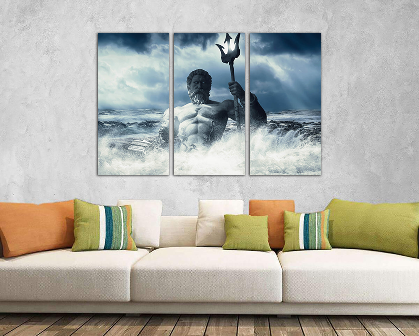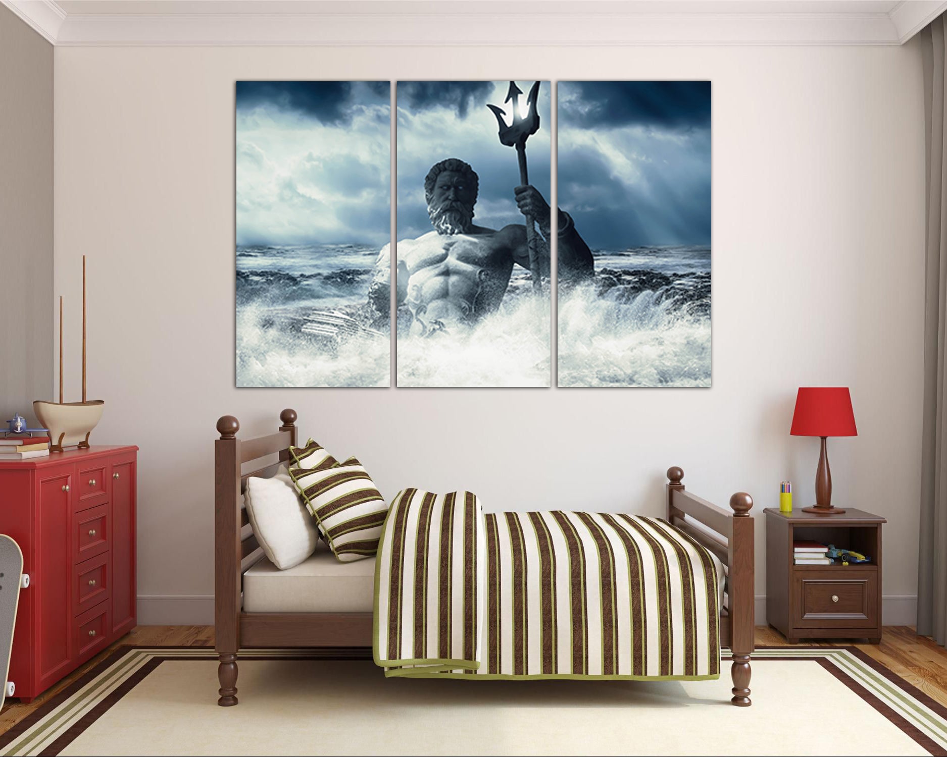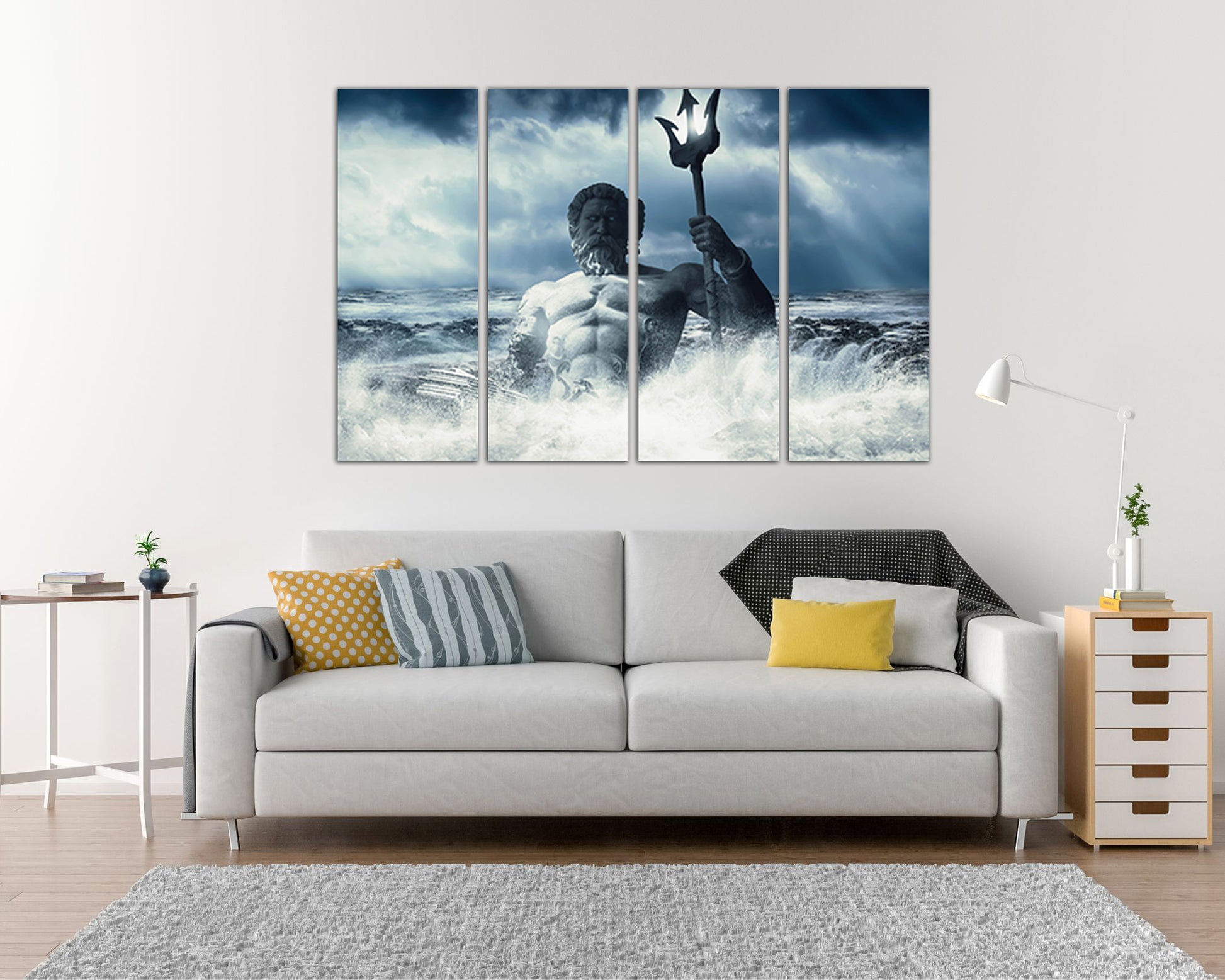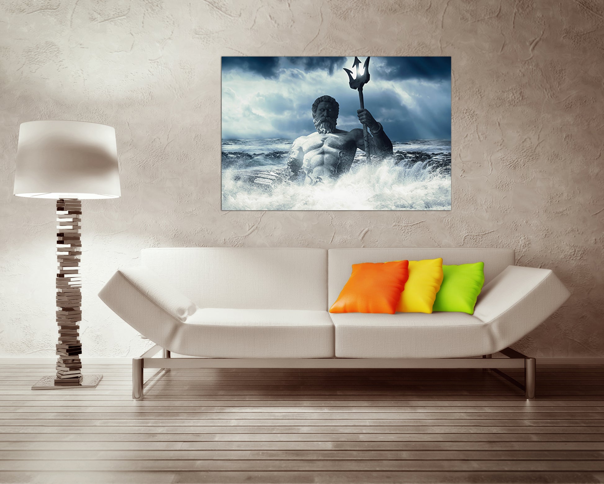 Greek god print on canvas Poseidon wall decor Storm at sea art work Mythology ready to hang