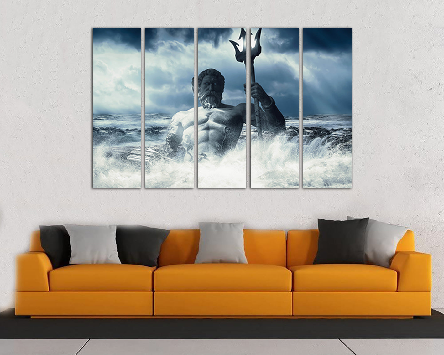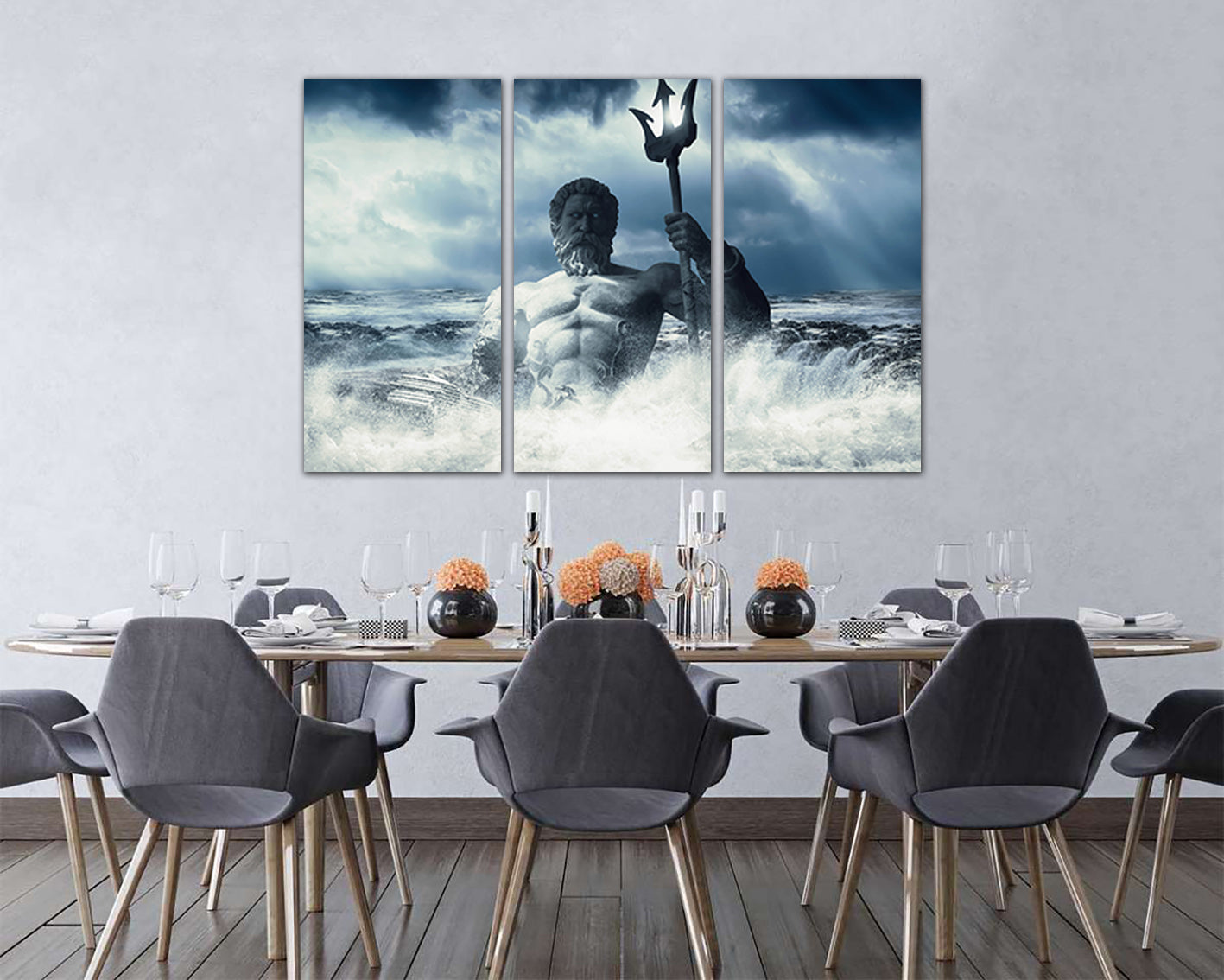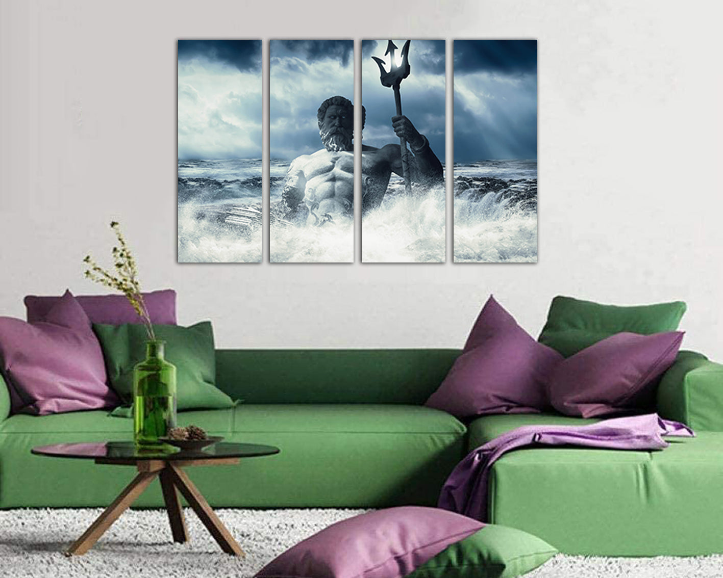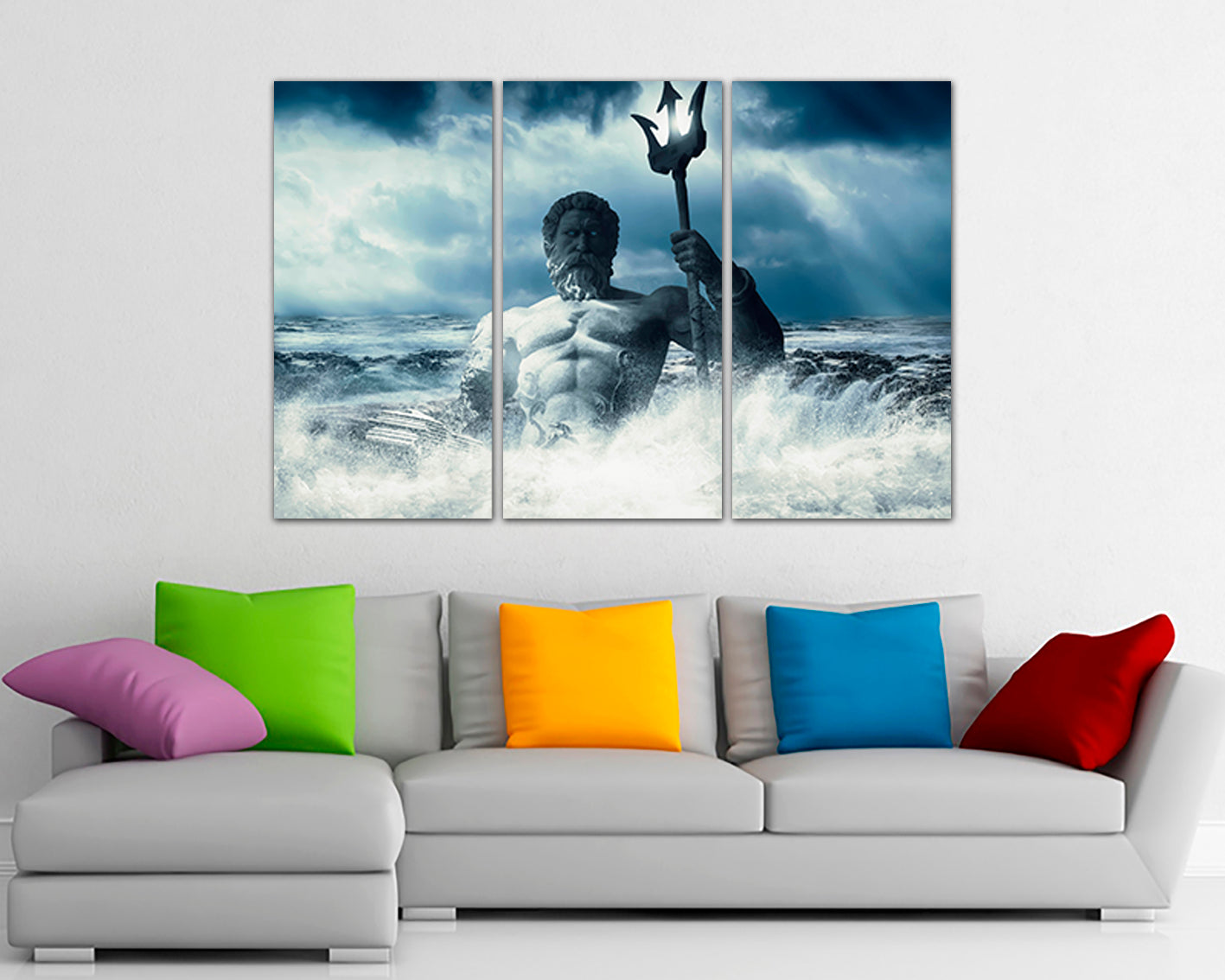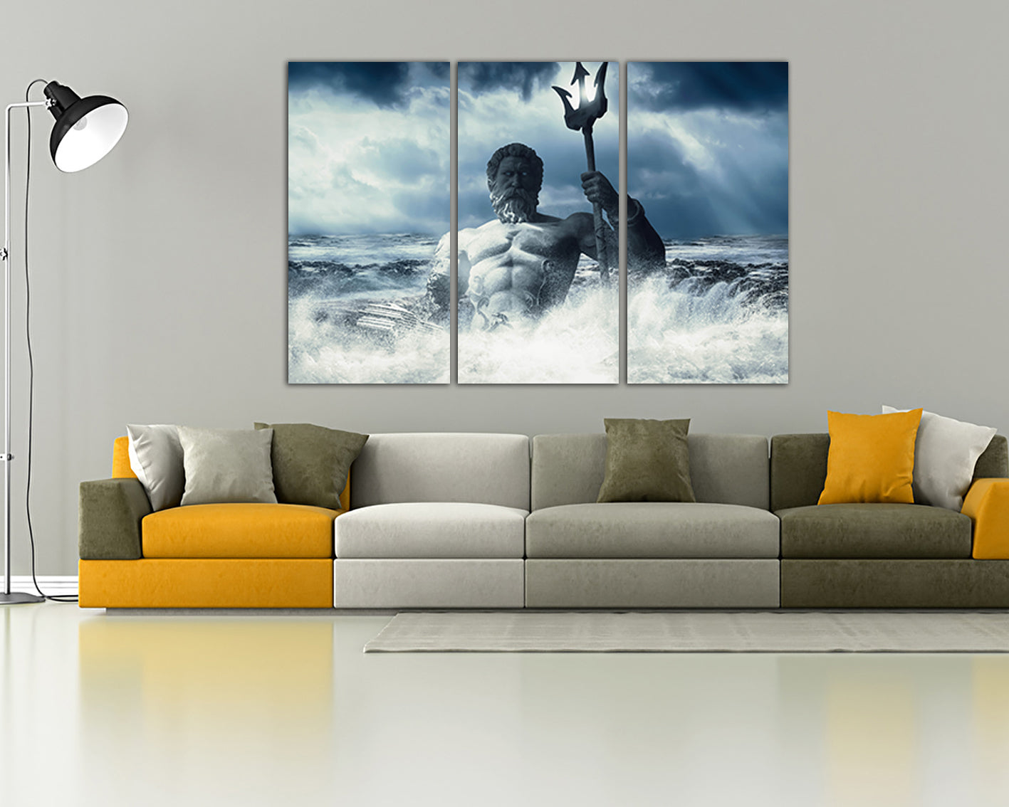 Greek god print on canvas Poseidon wall decor Storm at sea art work Mythology ready to hang