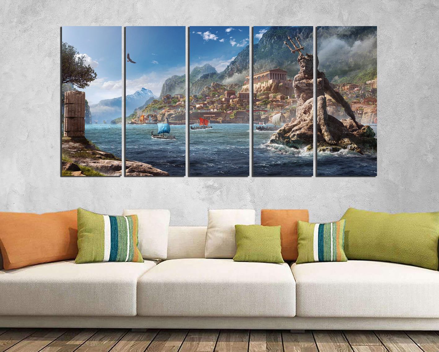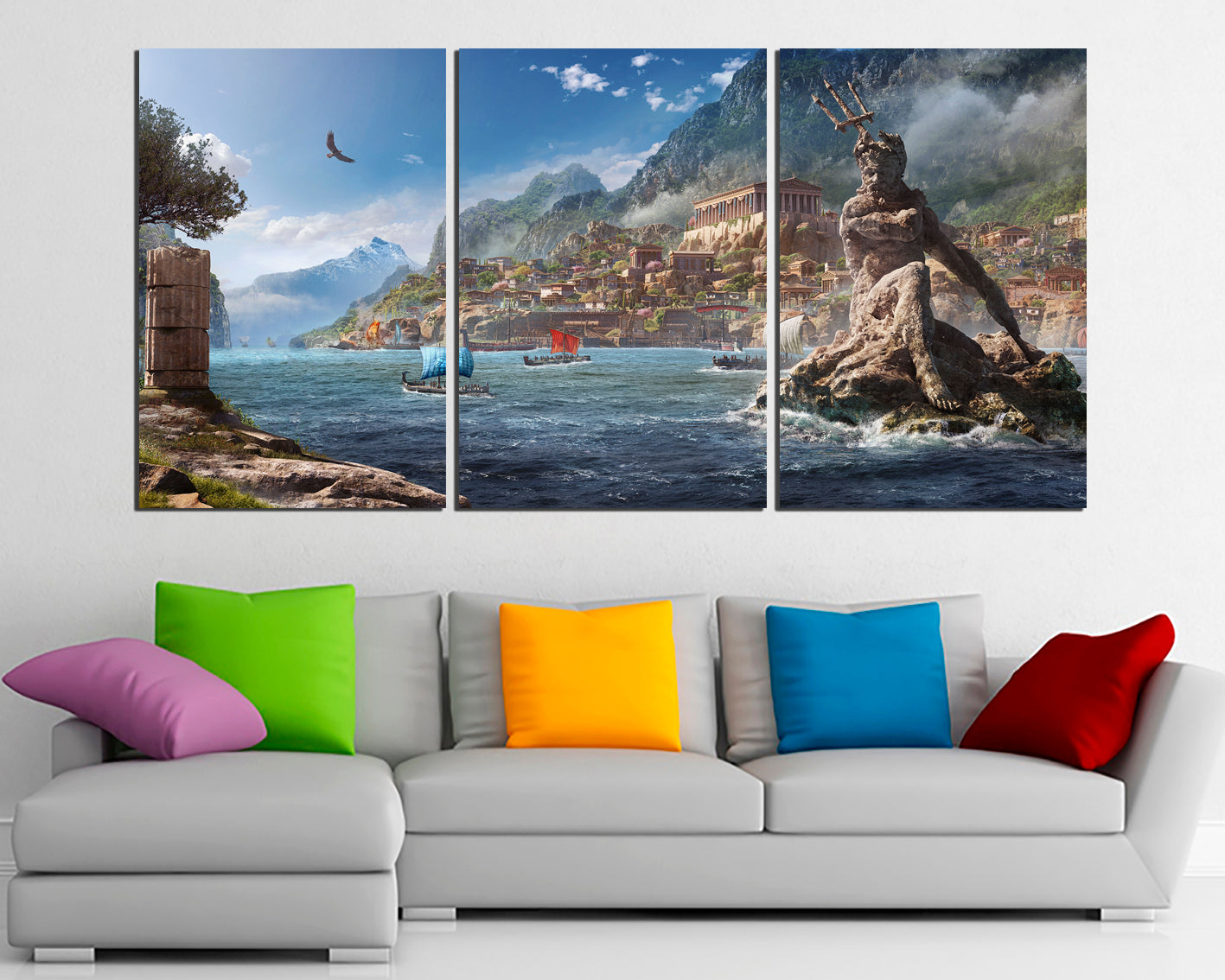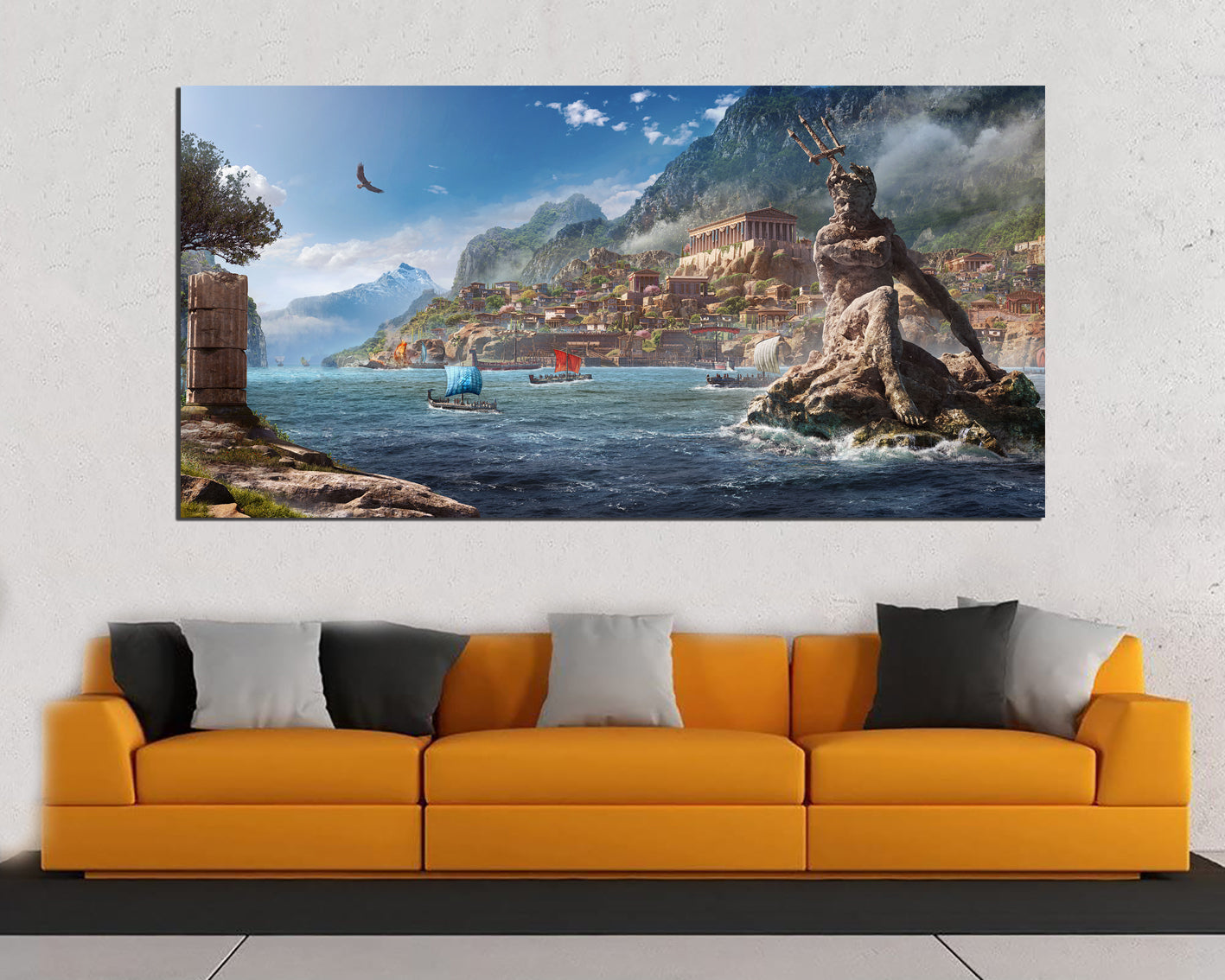 Greece print on canvas Poseidon art work Mythology wall decor ready to hang